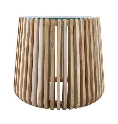 Our Alder Side Table is crafted from teak wood, the coffee table showcases the natural beauty of the wood's grain while maintaining a sleek and sophisticated appearance. The whole piece has a clear lacquer top coat, making it a unique stylish piece of furniture.