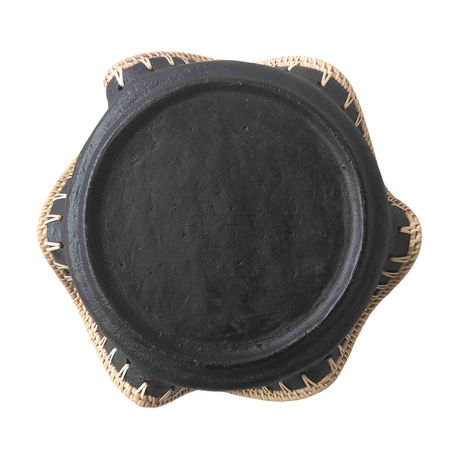The Wave Terracotta Bowl in Black blends sculptural form with natural texture. Hand-thrown from terracotta and finished in a deep matte black, this bowl is accented with a hand-applied rattan wave detail that adds warmth and contrast. Its wide, low profile makes it ideal as a decorative centerpiece for consoles, coffee tables, or dining surfaces. Each piece is uniquely shaped, celebrating the beauty of handcrafted ceramics.