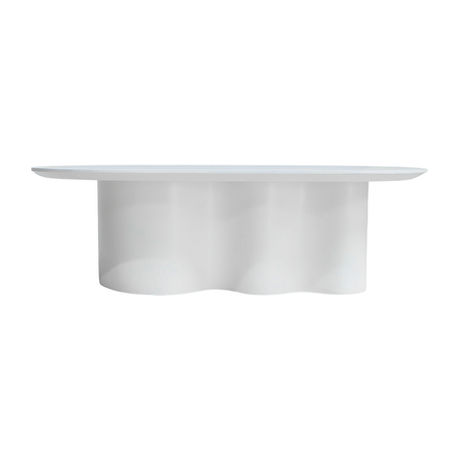 Inspired by contemporary outdoor architecture and resort-style living, the Kobe Resin Coffee Table Oval brings a refined, grounded presence to open-air spaces. The elongated oval top offers ample room for drinks, books, and shared moments, while the continuous pedestal base gives the table a strong, cohesive form. Crafted entirely from resin, the piece is finished in a clean white tone that complements natural stone, teak, and woven outdoor textures. Smooth curves and generous proportions make it an inviting centerpiece for poolside lounges, covered patios, or modern terraces, where durability and elevated design are equally essential.