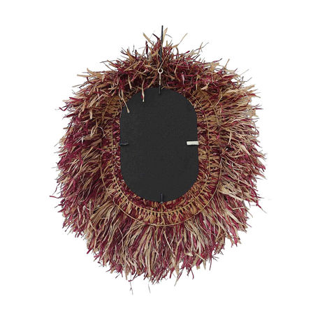 Handcrafted from woven banana fibre and finished with a dramatic halo of natural and dyed sisal, this mirror adds bold texture and vibrant energy to any space. The layered fibres, with their striking mix of earthy neutrals and deep red tones, create a sunburst-inspired silhouette that feels both organic and tribal-chic. A true statement piece, it brings artisanal craftsmanship and global flair to entryways, living rooms, or bedrooms.