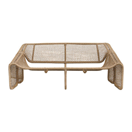The Amalfi Outdoor Loveseat is a sculptural take on coastal outdoor seating, defined by its fluid, contemporary silhouette. Crafted with a lightweight yet durable aluminum frame, the structure is wrapped in handwoven polyrattan that creates an airy, open-grid texture. Its curved form gently cradles the body while maintaining a modern, architectural presence.