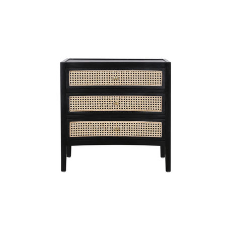 The Brice Side Table brings a warm, natural look to any space with its blend of organic texture and clean design. Crafted from bayur wood, engineered mindi wood, and woven rattan, this piece offers both durability and a light, airy aesthetic. Three rattan-front drawers add beautiful texture while providing practical storage for bedside or living room essentials. The black frame creates a striking contrast that highlights the natural weave, giving the table a modern yet timeless appeal.