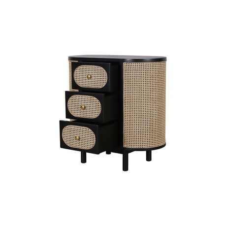 The Joelle Side Table brings sculptural softness to any room with its curved silhouette and hand-woven rattan panels. Three oval drawers echo the rounded frame, creating a balanced design that feels organic yet tailored.