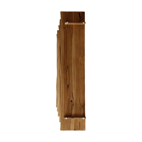 The Knoll Teak Bookcase is a striking balance of structure and organic form. Crafted from plantation teak wood, this open shelving unit features a rustic, unfinished surface that highlights the wood’s natural grain and warmth. One side is intentionally left with organic, irregular edges, celebrating the raw beauty of the material and ensuring that no two pieces are exactly alike. With its generous scale and open design, the Knoll Bookcase works beautifully as a room divider, statement storage piece, or sculptural focal point in living spaces, offices, or studios.