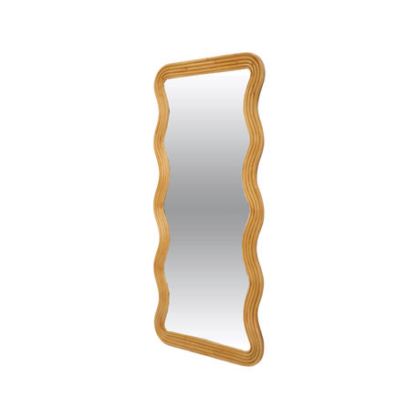 The Soma Floor Mirror features an elongated, irregular silhouette framed in layered rattan for a sculptural, organic look. Designed as a floor mirror, its flowing outline softens the vertical form while adding warmth and texture to the space. Leaning or wall-mounted, this mirror makes a striking statement in bedrooms, dressing areas, or living spaces, blending natural materials with a contemporary, artful presence.